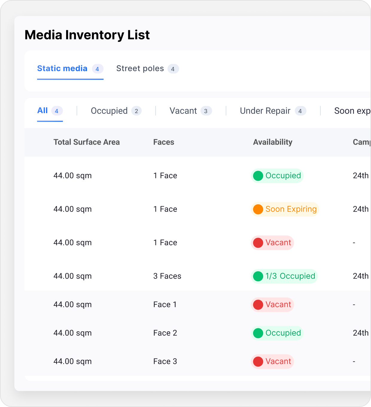 Most teams struggle to know what is vacant, booked, or expiring because their information is scattered across different tools. OOH OwnerHub gives you a faster and more organised way to work.