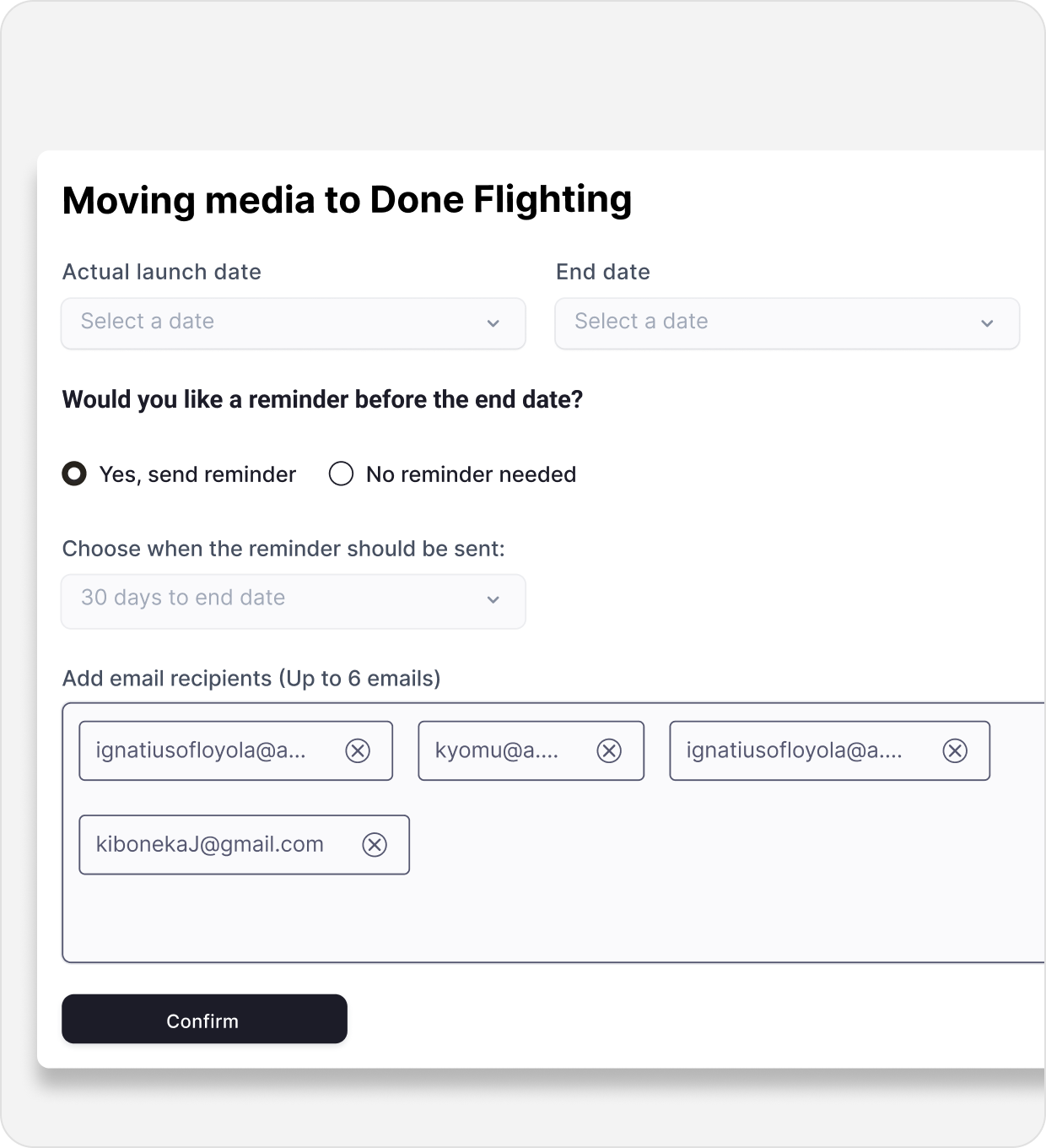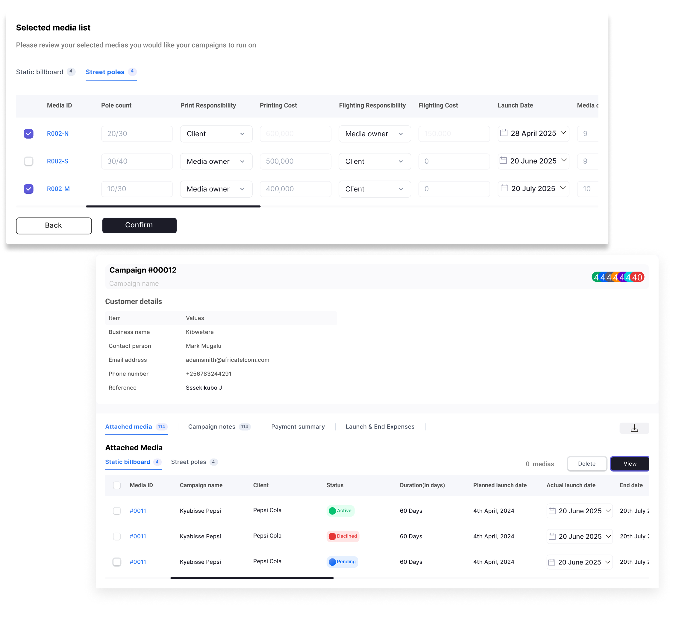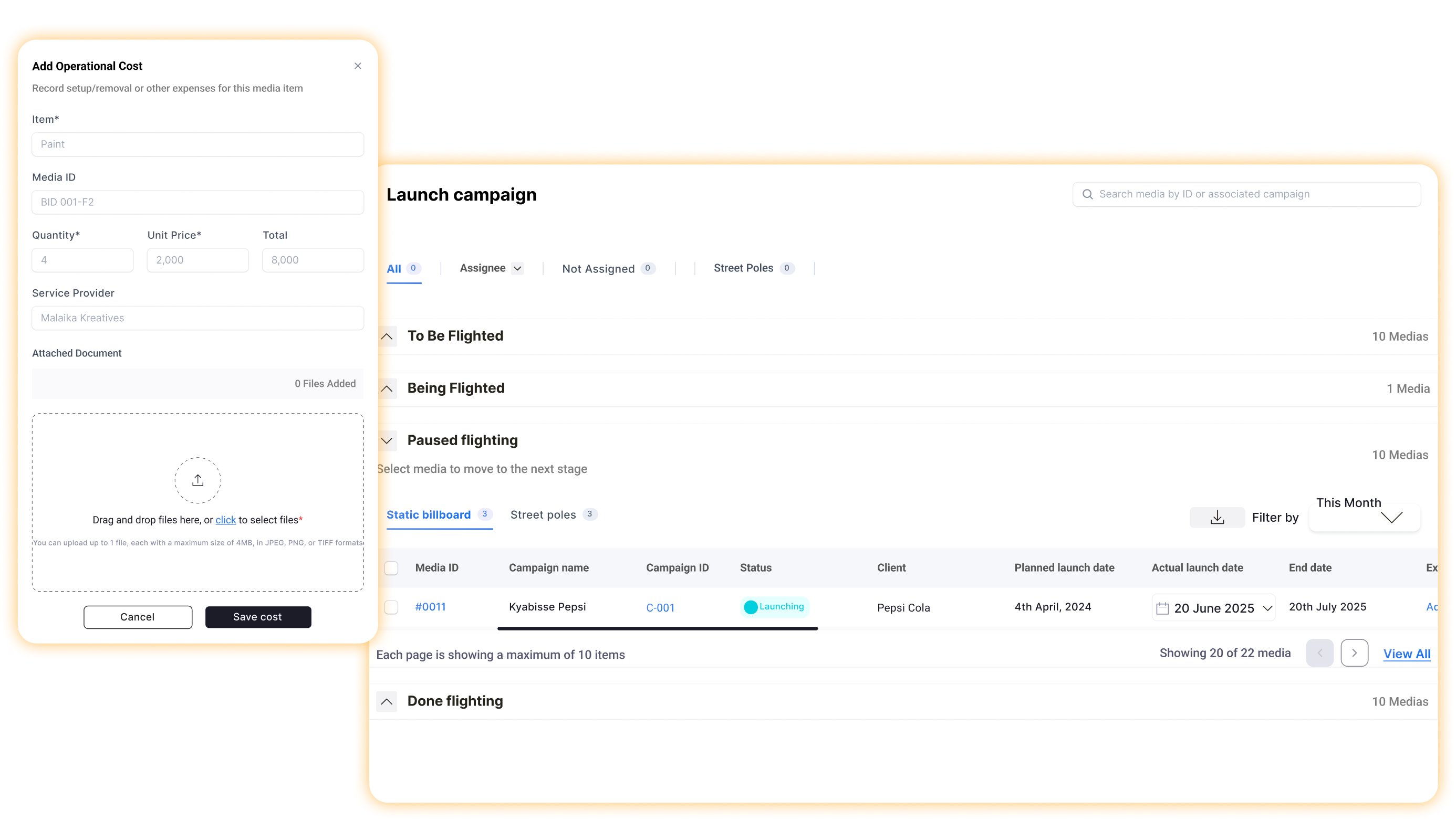Assign rollout teams, track launch progress, capture campaign proof and set expiry reminders for your clients